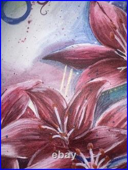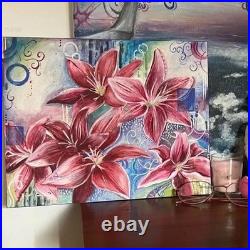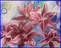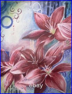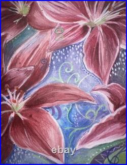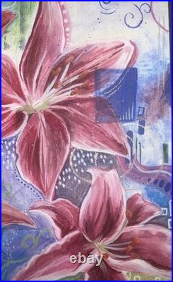 / Aquarelle originale sur toile rigide /Lys colorées/Tableau déco motifs abstraits
