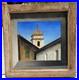 Huile sur toile de Annie Worthington. Série Provencal Windows 98. Dans un cadre singulier, une ancienne fenêtre de Provence aux volets patinés par le temps, cette peinture en trompe-l’oil transporte le spectateur au cour d’une scène typique du sud de la France.
