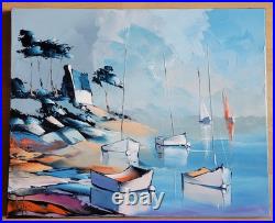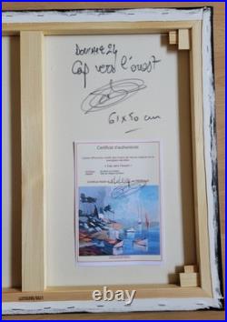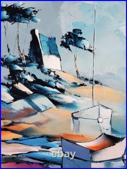 » CAP VERS L’OUEST » 61×50 cm, ouvre originale de 2024 de JP Douchez sur toile tendue sur châssis bois. Signée, contresignée au dos avec certificat d’authenticité par l’artiste. Ouvre riche en matière réalisée au couteau à peindre. Le travail de JP Douchez se revendique expressionniste, figuratif, avec pour sujet de prédilection les paysages, la côte, cet endroit où terre et mer se côtoient et dont il prend des libertés d’interprétation et laisse libre cours à ses impressions. Il met en valeur les paysages bretons de bord de mer, mettant souvent en scène les enfants et les familles. Les couleurs sont appliquées en une pâte généreuse. Le choix du couteau simplifie les formes et donne force et énergie à la toile. En Europe, ses ouvres, majoritairement acquises en collections privées, sont présentes en galeries et salles des ventes. Possibilité de livraison à domicile pour le Luxembourg, le Portugal et l’Autriche.