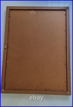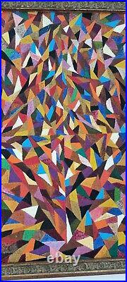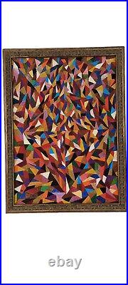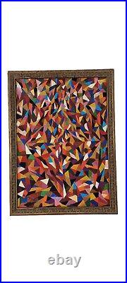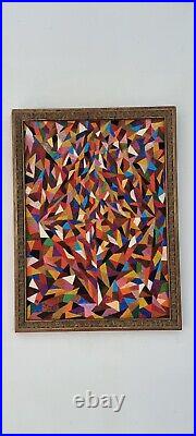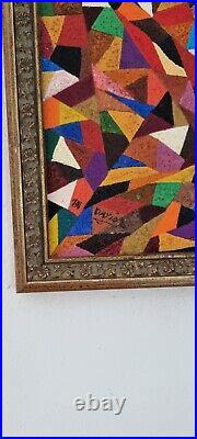 Peinture Huile sur toile vintage tableau encadré signé abstrait à motifs Géométrique colorés. Vintage Painting oil on canvas modern abstract.